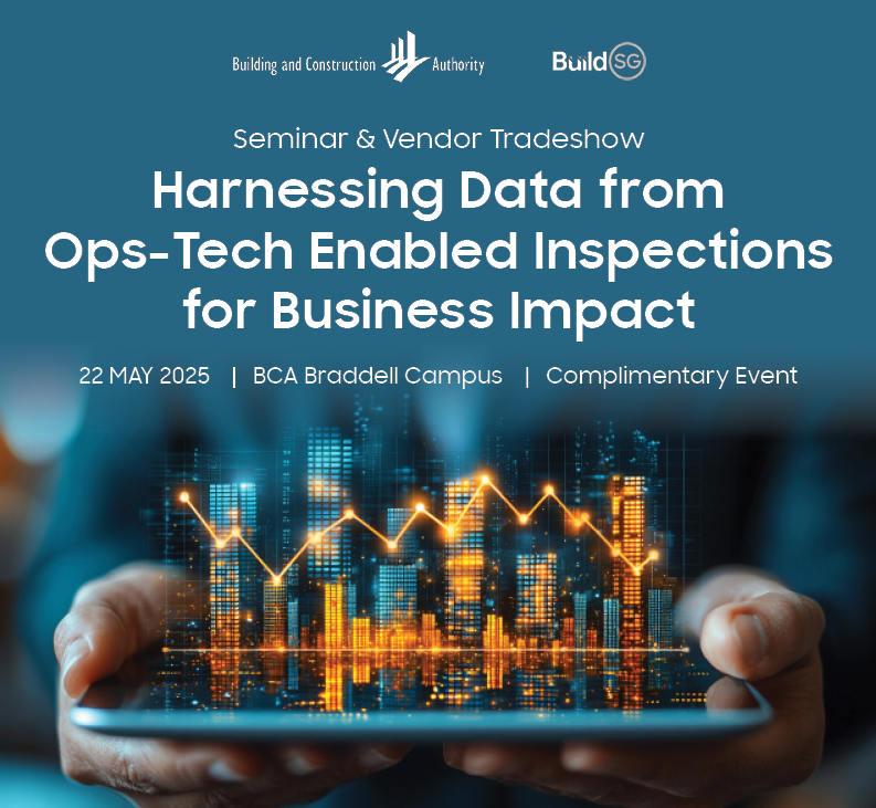Harnessing Data from Ops-Tech Enabled Inspections for Business Impact Click on the links below to download the presentation slides: 1.BCA_Update on Site Management Platform (SMP) and Virtual TOP PDF, 4.05 MB 4.CHEC_Shaping the Digital Site CHEC’s Digitalisation Experience and SGBuildex Collaboration PDF, 1.45 MB 3.DEX_Unlocking Seamless Data Exchange Across the Built Environment One Connection, Endless Possibilities PDF, 1.38 MB 5.Dragages_Strategic Digitalization for Smarter Project Management PDF, 2.79 MB 2.HDB_Transforming Construction Through IDD HDB's Data-Driven Journey and Future Vision PDF, 2.56 MB Click on the link below to access to the updated Site Management Data Standards: https://go.gov.sg/datastd