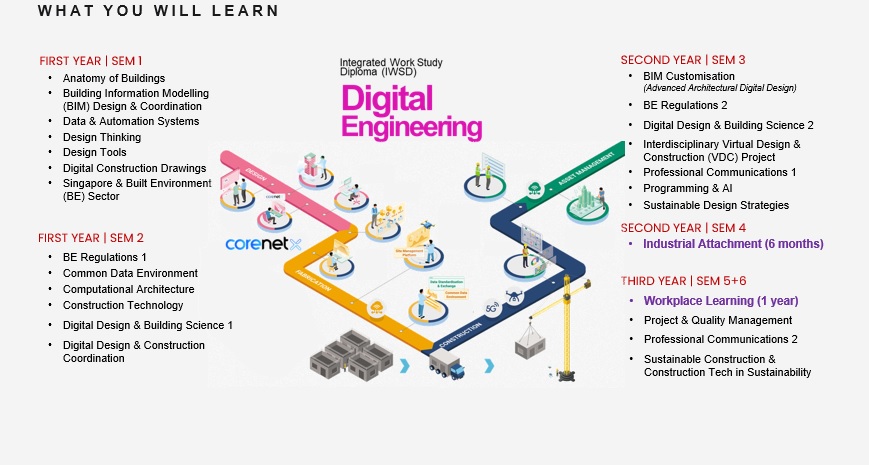 Step into the future of Singapore’s Built Environment with the Integrated Work-Study Diploma in Digital Engineering (DDE) — where construction meets digital innovation. Gone are the days of sweat, hard hats, and dusty blueprints. Today, building is smart, virtual, and collaborative.