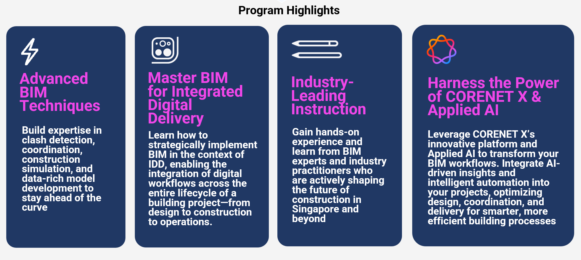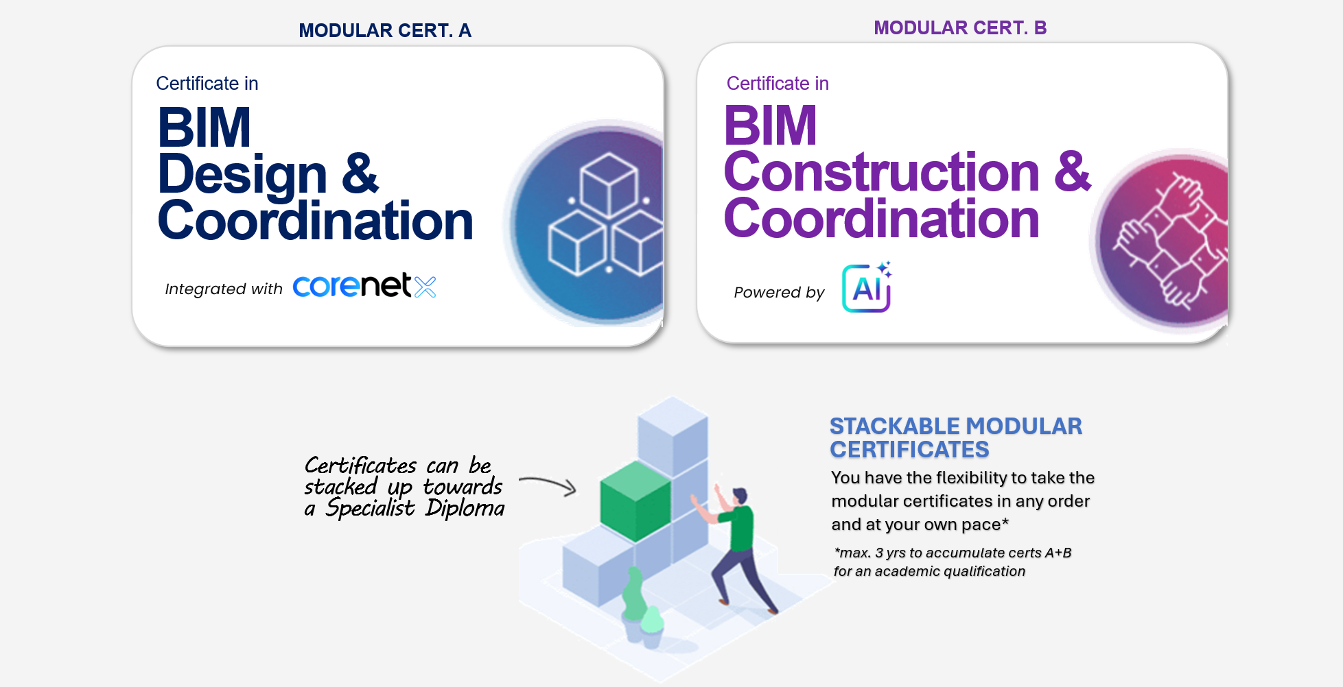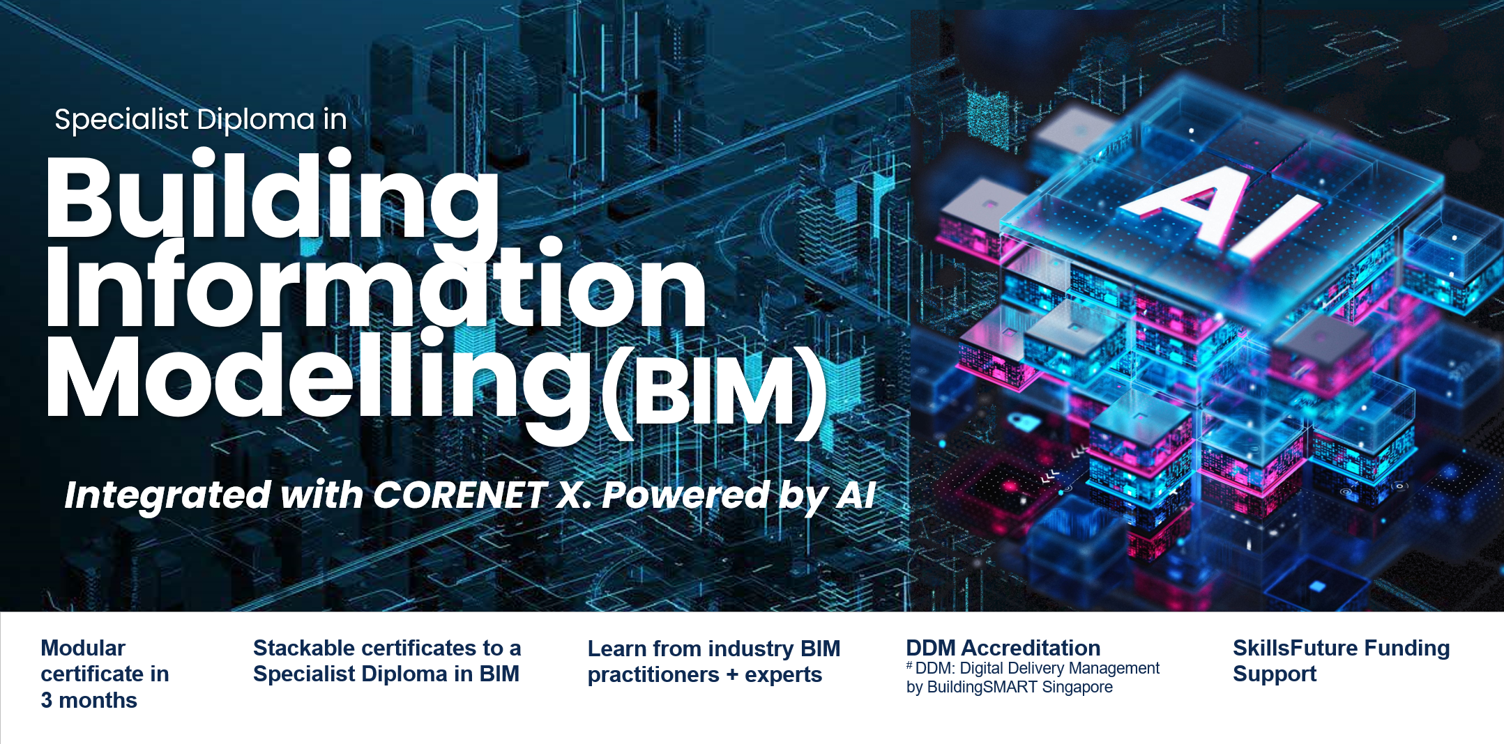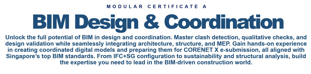 Applicants must possess BIM modelling skills and relevant experience; and are required to submit a Certificate of Successful Completion of a BIM Modelling course (Architecture/MEP/Structure Tracks) issued within the last 2 years by authorised training centres in Singapore (e.g. BCA Academy).